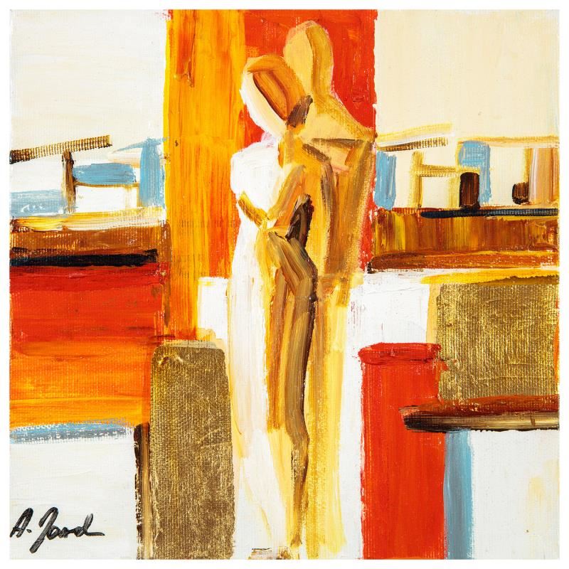 This is an original acrylic painting on stretched canvas by Adriana Naveh, hand signed by the artist. Includes Letter of Authenticity. Measures approx. 9" x 9" (image).