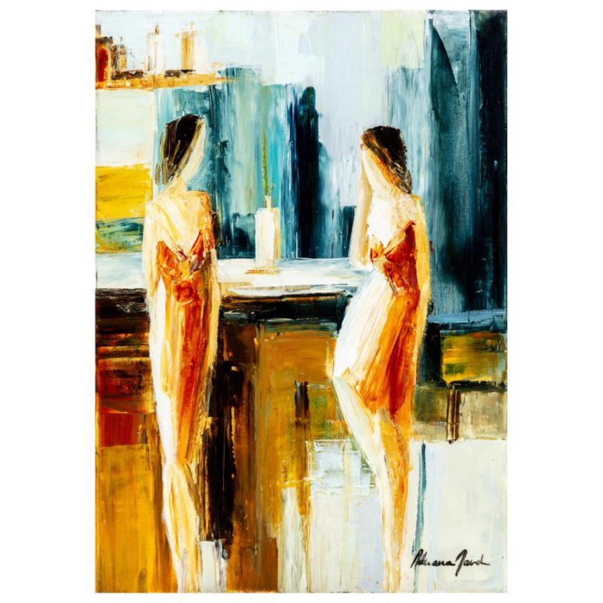 "Womanly Discussion" is an original acrylic painting on stretched canvas by Adriana Naveh, hand signed by the artist. Includes Letter of Authenticity. Measures approx. 19" x 28" (image). Reference #: 243753