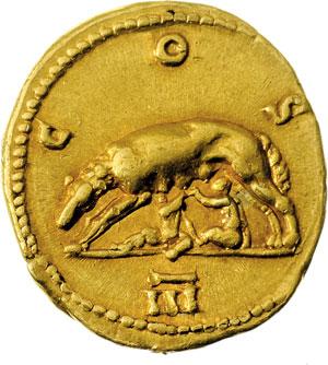 Impero Romano. Adriano (117-138). Aureo. D/ HADRIANVS AVGVSTVS. Busto laureato a destra, con drappeggio sulla spalla sinistra. R/ COS III. La lupa a sinistra, che allatta i gemelli. RIC 193. C.422. AU. g. 7.37 mm. 20.00 Bel BB+.