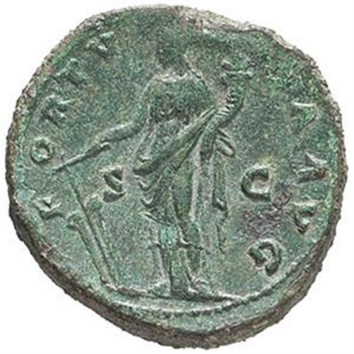 Impero Romano. Adriano (117-138). Sesterzio. D/ HADRIANVS AVG COS III PP. Busto laureato a destra. R/ FORTVNA AVG SC. Fortuna, stante a sinistra, tiene timone e cornucopia. RIC 759 var. (timone su globo). gr. 28.66 R. AE. Bel BB+. Esemplare molto attraente. Patina verde smeraldo.