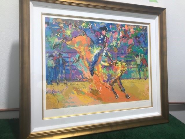 "Adriano World Champion Bull Rider" by LeRoy Neiman (1921-2012) Hand signed by LeRoy Neiman and the subject of this piece Adriano Morales - Limited Edition serigraph Artist Proof #69 of 70 - Framed size = 43" x 51"
