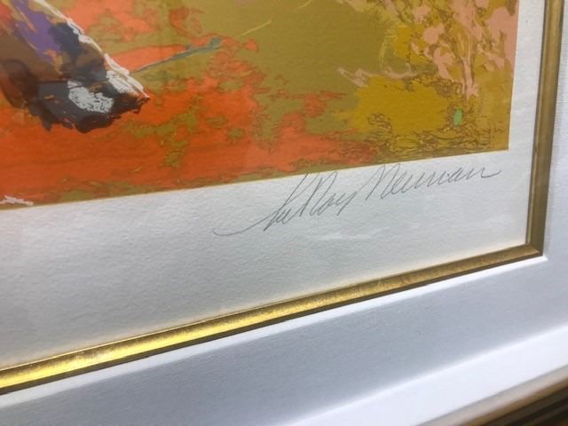 "Adriano World Champion Bull Rider" by LeRoy Neiman (1921-2012) Hand signed by LeRoy Neiman and the subject of this piece Adriano Morales - Limited Edition serigraph Artist Proof #69 of 70 - Framed size = 43" x 51"