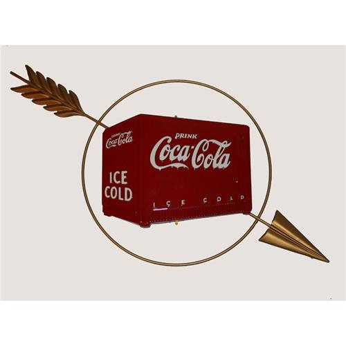 Adv. Sign - Coca-Cola - Aluminum -Coke Cooler and Arrow. Measures approx. 32" x 17." Circa 1940's. Great condition.