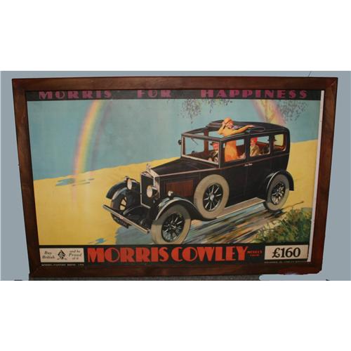 Morris Cowley - Morris for Happiness Advertising Sign. Framed size 24" x 37" W. Lower right corner - Printed in Great Britain.