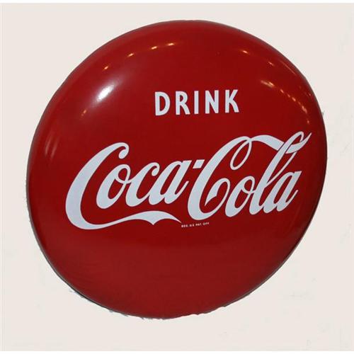 Red 36" Coca Cola Button with white Coca Cola Script.  Circa 1950's - 1960's.  Great Condition.