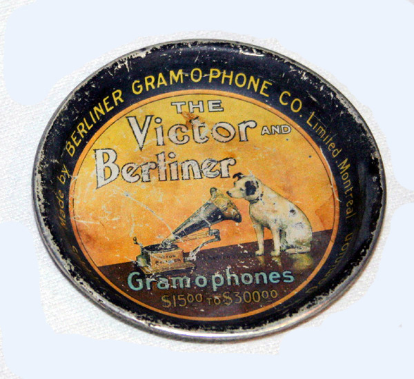 Berliner Graphophone Tip Tray. Rare. Good grahics, legible, but with consideeable wear primarily on rim.