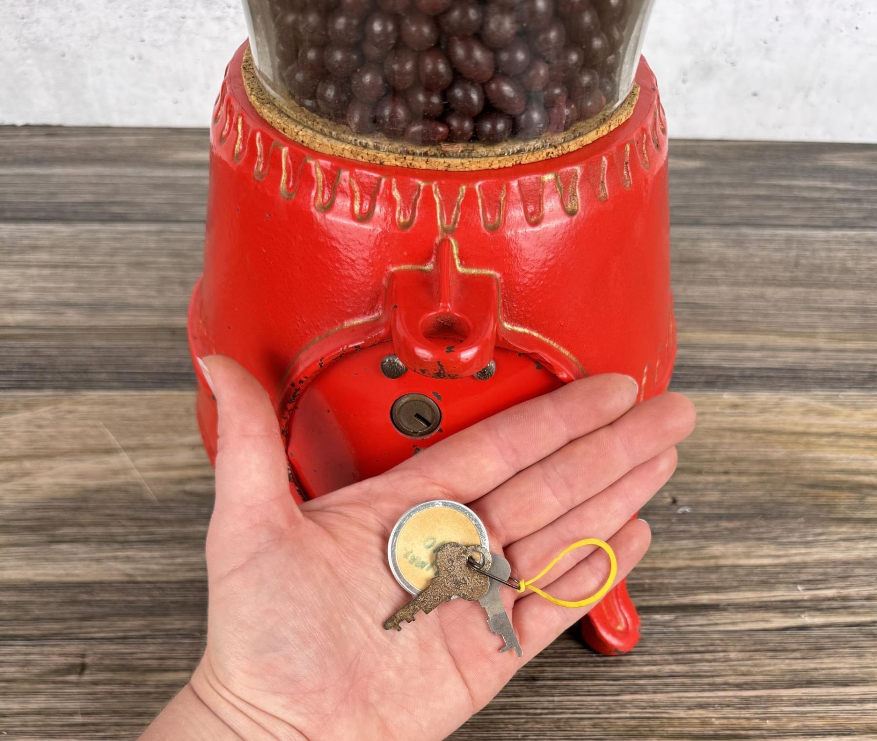 Comes with keys. Working. Rare machine, impossible to find in this condition. 19 3/4" by 9" by 8 1/4".