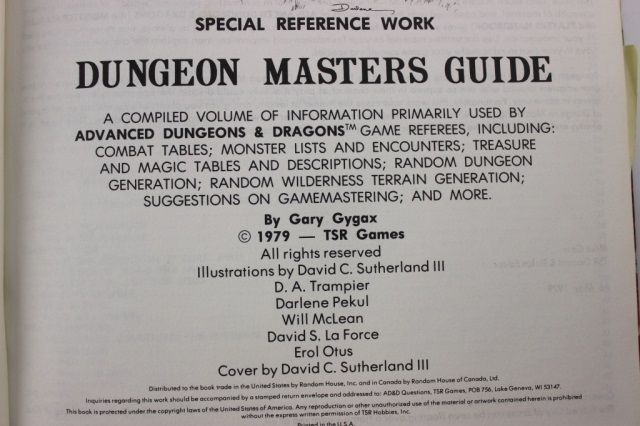 Fair in Illustrated Boards; 4to; Hard Cover; 240 pages; B/W Illustrations; TSR Games; 1979; First Edition; Advanced Dungeons & Dragons Special Reference Work; Heavy wear and rubbing to boards; Binding and edges of boards reinforced and held together with clear tape; Boards warped; Soiling to edges of text block; Previous owner's ink name to front end paper; Some minor soiling to text; Useable copy but definitely a reference copy, it's been well-used