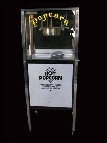Advanced Popcorn Machine. Prosperity Model, St. Louis, Mo. Porcelian, 23 inches square and 56 inches tall. In like new condition. Works.