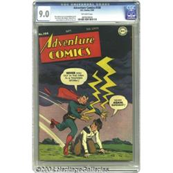 <B>Adventure Comics #108 (DC, 1946) CGC VF/NM 9.0 Off-white pages.</B></I> Superboy plays guardian angel on the cover of this (lightning-) striking cover. CGC has certified only two copies of this issue at a higher grade, and you can clearly see why. The cover colors are rich and boisterous, and the spine reveals few signs of wear. Aquaman, Green Arrow, Johnny Quick, and the Shining Knight join the Boy of Steel inside. Overstreet 2004 VF/NM 9.0 value = $638; NM- 9.2 value = $850. <BR><BR><B>Important notice:</B> Heritage usually auctions material at the rate of 200-250 lots per hour. On some occasions eBay Live bid software or the Internet may not be able to keep up with the pace of the auction. We recommend placing a realistic absentee bid now as insurance to avoid disappointment. Occasionally the auctioneer may eliminate or reject an eBay Live bid, and the auctioneer may also reopen a lot after the close of the eBay live bidding (usually because we missed an audience bid), and may reject your bid even if it shows you as the winning bidder. By bidding via eBay Live, you agree that Heritage may award the lot to another bidder at its sole discretion under the circumstances described above or any other reasonable circumstances. Since eBay bids are not shown to us until we open the lot on the floor, we treat those bids just like floor bids. In most cases the floor responds before the eBay bid is presented to us, due to Internet lag time, so for consistency we have made it a policy that floor bids are always considered first over tie eBay live bids. Also please note that all Heritage lots purchased through eBay Live carry a 20% Buyer's Premium. Please make sure you read the Terms and Conditions before you bid. </span></font></tr></table></td></tr></table>