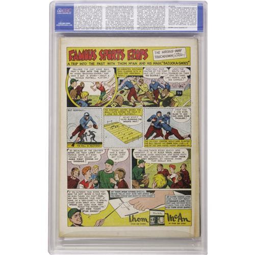 <B>Adventure Comics #116 Double Cover (DC, 1947) CGC NM 9.4 Off-white pages.</B></I> This pretty copy is tied with one other of #116 at this grade, the only ones CGC has graded higher than VF+ 8.5 to date. Jack Burnley did the cover and also contributed interior artwork. CGC notes, "1st cover 9.0, interior cover 9.4." Overstreet 2006 NM- 9.2 value = $940. CGC census 10/06: 2 in 9.4, none higher.<BR><BR><b>Shipping:</b> Slabbed Comic (<a target="_blank" href="http://www.heritageauctions.com/common/shipping.php">view shipping information</a>)