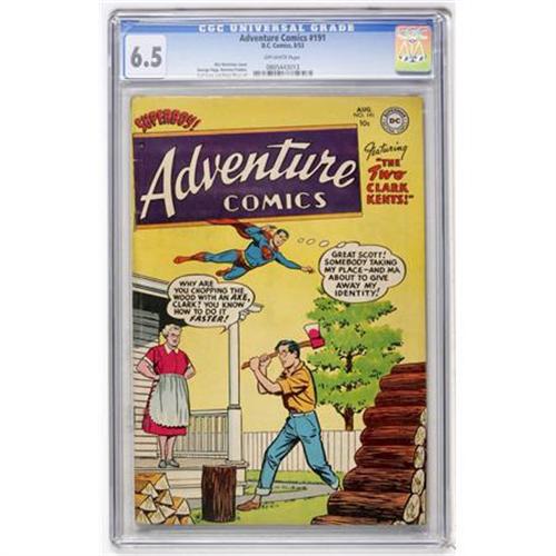 <B>Adventure Comics #191 (DC, 1953) CGC FN+ 6.5 Off-white pages.</B></I> Win Mortimer cover. George Papp, Ramona Fradon, and Curt Swan art. Currently, the only copy on the CGC census. Overstreet 2007 FN 6.0 value = $123; VF 8.0 value = $250. CGC census 1/08: 1 in 6.5, none higher. <I> From the Toronto Collection.</B></I><BR><BR><b>Shipping:</b> Comics - Slabbed (certified) (<a target="_blank" href="http://www.heritageauctions.com/common/shipping.php">view shipping information</a>)
