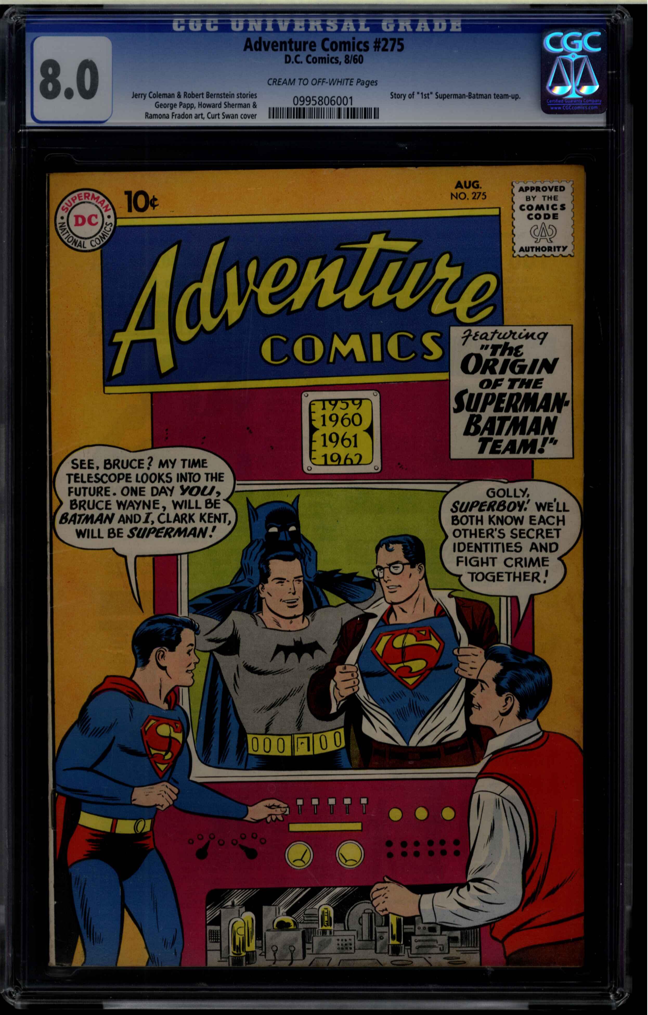 Story of ""1st"" Superman-Batman team-up. CGC census: 2 at 8.0 with only 3 better.