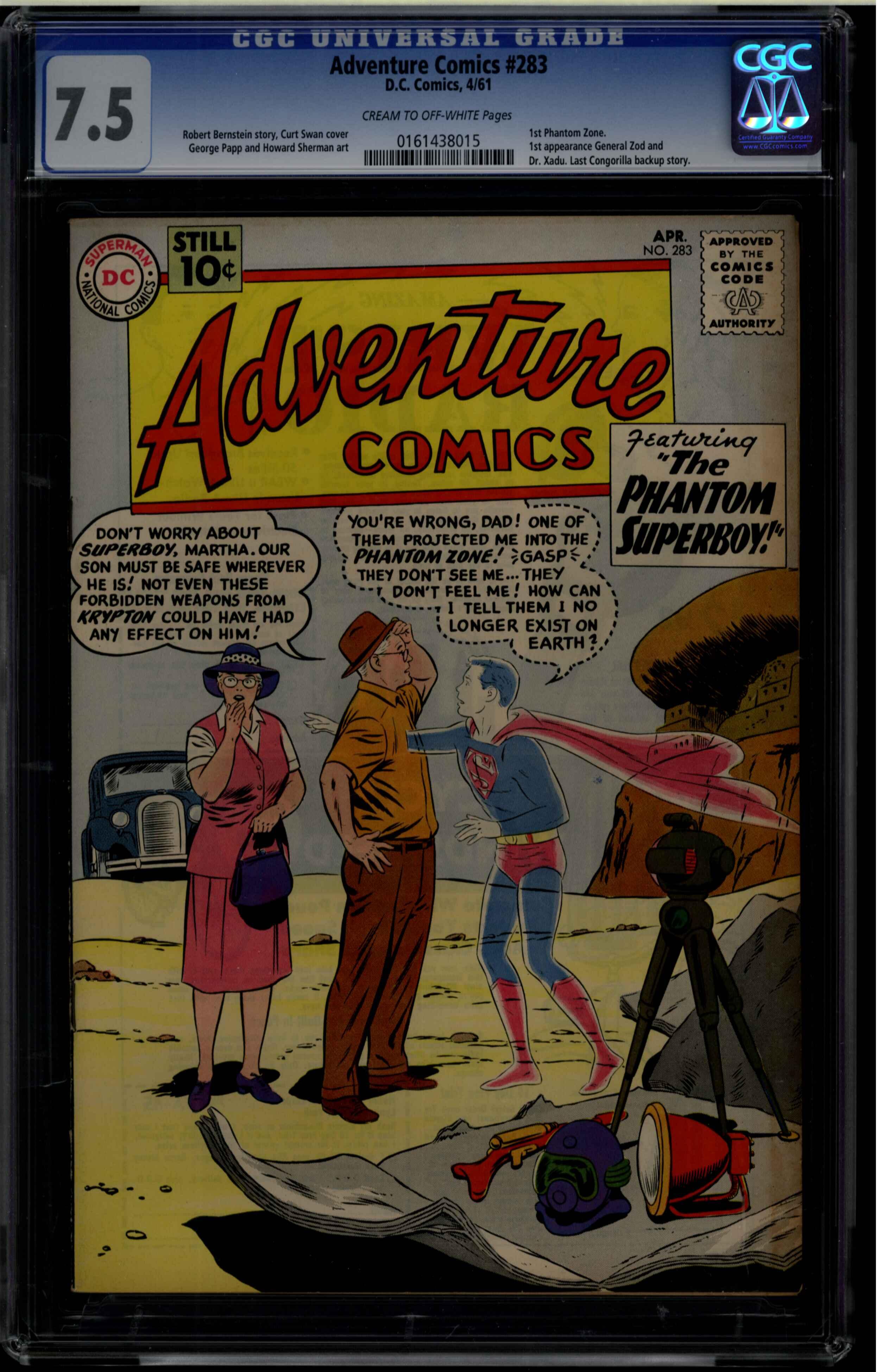 Universal 7.5 CREAM TO OFF-WHITE Robert Bernstein story Curt Swan cover George Papp and Howard Sherman art 1st appearance General Zod and Dr. Xadu. Last Congorilla backup story. 1st Phantom Zone. CGC census: 4 at 7.5 with 8 higher.