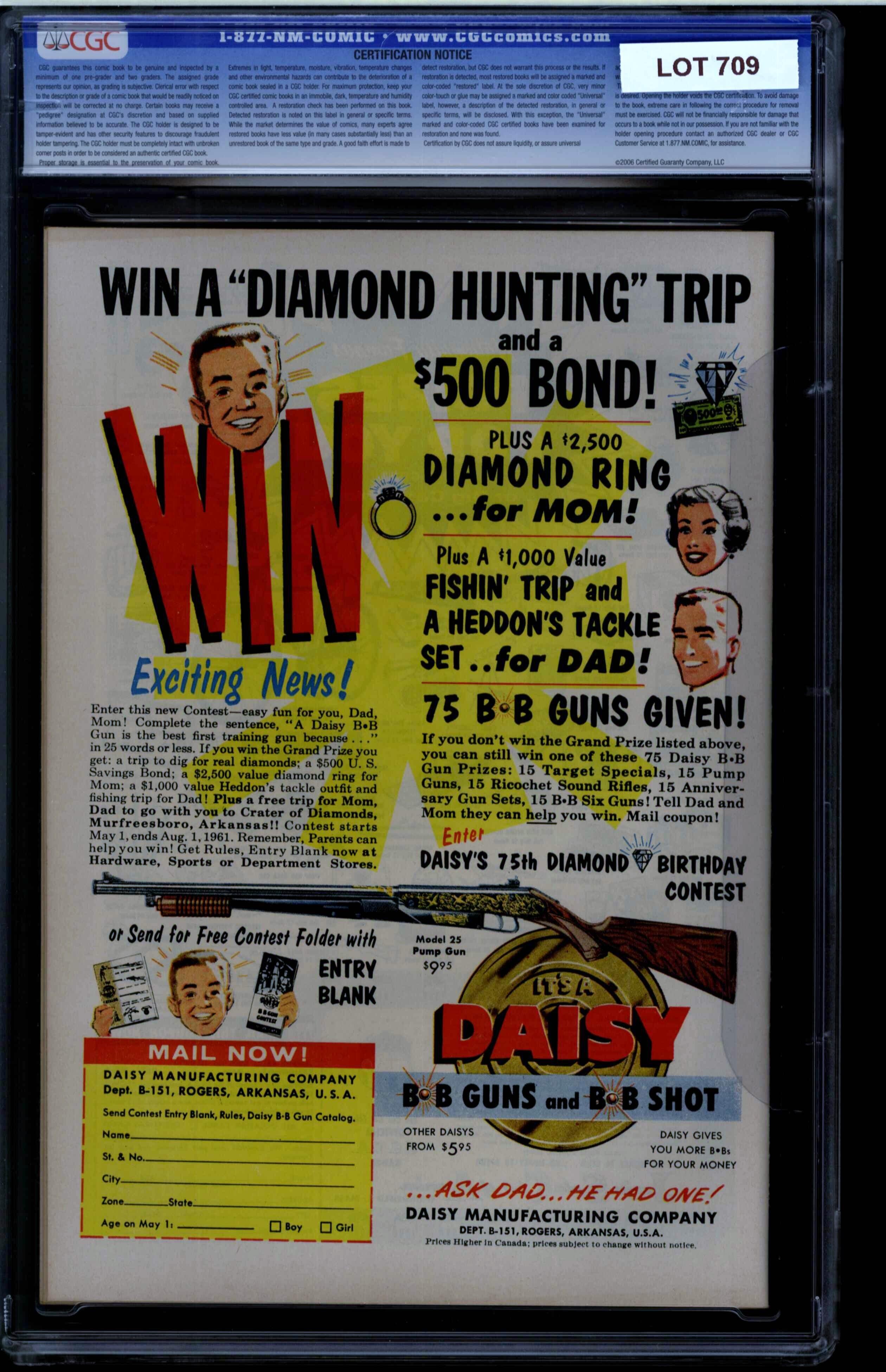 The Auctioneer has reserved the right to reject any and all bids, and to bid at the auction. Auctioneers Auctions are not on approval. Auctioneer does not allow certified material to be returned because of possible differences of opinion with respect to the grade offered by any third party organization, dealer, or service. Absolutely no guarantee of grade is offered for un-certified property sold and subsequently submitted to a third-party grading service. There will be no exceptions to this policy. Under extremely limited circumstances, (e.g. gross cataloging error) a purchaser, who did not bid from the floor, may request Auctioneer to evaluate voiding a sale; such request must be made in writing detailing the alleged gross error, and submission of the lot to the Auctioneer must be pre-approved by the Auctioneer. Bidder must notify Auctioneer in writing of such request within three (3) days of the non-floor bidder receipt of the lot. Any lot that is to be evaluated must be in our offices within 30 days after Auction. Grading does not qualify for this evaluation process nor do such complaints constitute a basis to challenge the authenticity of a lot. AFTER THAT 30-DAY PERIOD, NO LOTS MAY BE RETURNED FOR REASONS OTHER THAN AUTHENTICITY. Lots returned must be housed intact in the original holder. No lots purchased by floor Bidders may be returned (including those Bidders acting as agents for others). Late remittance for purchases may be considered just cause to revoke all return privileges. B: Auctions conducted solely on the Internet have a THREE (3) DAY RETURN POLICY: Lots paid for within seven days of the Auction closing are sold with a three (3) day return privilege. You may return lots under the following conditions: Within three days of receipt of the lot, you must first notify Auctioneer by contacting Client Service by phone (314-680-8599) or e-mail (moundcityauctions@gmail.com), and immediately mail the lot(s) fully insured to the attention of Returns, Mound City Auctions 1081 Teson Rd. Hazelwood, MO. 63042. Lots must be housed intact in their original holder and in their original condition. You are responsible for the insured, safe delivery of any lots. Auctioneer will not be responsible for lots returned in non-registered mail or lots returned without prior authorization per section B. A non-negotiable return fee of 5% of the purchase price ($10 per lot minimum) will be deducted from the refund for each returned lot or billed directly. Postage and handling fees are not refunded. After the three-day period (from receipt), no items may be returned for any reason. Late remittance for purchases revokes all Return-Restock privileges. C: Bidders who have inspected the lots prior to the auction will not be granted any return privileges. D: Comic books sold referencing a third-party grading service are sold “as is” without any express or implied warranty. Certain warranties may be available from the grading services and the Bidder is referred to them for further details: Certified Guaranty Company, LLC. (CGC), P.O. Box 4738, Sarasota, FL 34230. E: Bidders who intend to challenge authenticity or provenance of a lot must notify Auctioneer in writing within thirty (30) days of the Auctions conclusion. In the event Auctioneer cannot deliver the lot or subsequently it is established that the lot lacks title, provenance, authenticity, or other transfer or condition issue is claimed, Auctioneer's liability shall be limited to rescission of sale and refund of purchase price; in no case shall Auctioneer's maximum liability exceed the high bid on that lot, which bid shall be deemed for all purposes the value of the lot. After one year has elapsed, Auctioneer's maximum liability shall be limited to any commissions and fees Auctioneer earned on that lot. F: All comics are guaranteed genuine, but are not guaranteed as to grade, since grading is a matter of opinion, an art and not a science, and therefore the opinion rendered by the Auctioneer or any third party grading service may not agree with the opinion of others (including trained experts), and the same expert may not grade the same item with the same grade at two different times. G: Since we cannot examine encapsulated comics, they are sold “as is”without our grading opinion, and may not be returned for any reason. Auctioneer shall not be liable for any patent or latent defect or controversy pertaining to or arising from any encapsulated collectible. In any such instance, purchaser's remedy, if any, shall be solely against the service certifying the collectible. H: Due to changing grading standards over time, differing interpretations, and to possible mishandling of items by subsequent owners, Auctioneer reserves the right to grade items differently than shown on certificates from any grading service that accompany the items. Auctioneer also reserves the right to grade items differently than the grades shown in the prior catalog should such items be reconsigned to any future auction. I: Although consensus grading is employed by most grading services, it should be noted as aforesaid that grading is not an exact science. In fact, it is entirely possible that if a lot is broken out of a plastic holder and resubmitted to another grading service or even to the same service, the lot could come back with a different grade assigned. J: Certification does not guarantee protection against the normal risks associated with potentially volatile markets. The degree of liquidity for certified collectibles will vary according to general market conditions and the particular lot involved. For some lots there may be no active market at all at certain points in time."