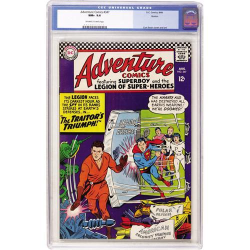 <B>Adventure Comics #347 Boston pedigree (DC, 1966) CGC NM+ 9.6 Off-white to white pages.</B></I> The Legion of Super-Heroes has a traitor in its midst and of course the Earth is in imminent danger. Curt Swan supplied the cover and interior art. Overstreet 2006 NM- 9.2 value = $70. CGC census 3/07: 1 in 9.6, none higher.<BR><BR><b>Shipping:</b> Comics - Slabbed (certified) (<a target="_blank" href="http://www.heritageauctions.com/common/shipping.php">view shipping information</a>)