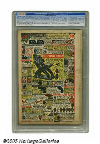<B>Adventure Comics #37 (DC, 1939) CGC VG/FN 5.0 Cream to off-white pages.</B></I> Not only do we really enjoy Creig Flessel's covers for this series, we admire his originality -- it seems that each scene was radically different from the next. Here, Flessel brings quite a bit of drama to, of all things, a hippo attack. Inside the comic, Fred Guardineer's "Anchors Aweigh" (which, as the name might indicate, starred Navy men) has the heroes finally meeting their mysterious archfoe, El Diablo. Also of note are some Bob Kane humor features. The issue is a Gerber "7," and our offering is one of only two unrestored copies that CGC has certified to date. Overstreet 2005 VG 4.0 value = $400; FN 6.0 value = $600. CGC census 1/05: 1 in 5.0, none higher. <I>From the Northern Lights Collection.</B></I>