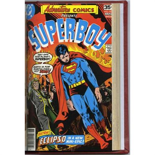 <B>Adventure Comics #441-460 Bound Volume (DC, 1975-78).</B></I> This handsome bound volume includes issues #441-460 which have been trimmed and bound into a red hardcover, with the title and issue span embossed on the spine. Issues #459 and 460 are 68 pages and conclude the New Gods/Darkseid storyline from <B>New Gods</B></I> #19. Aquaman and the Creeper star in multiple issues. Several of the covers have creases on the corners and into the cover and some have light surface soiling. Overstreet 2007 VG 4.0 value for group = $48.<BR><BR><b>Shipping:</b> Books & Catalogs (<a target="_blank" href="http://www.heritageauctions.com/common/shipping.php">view shipping information</a>)