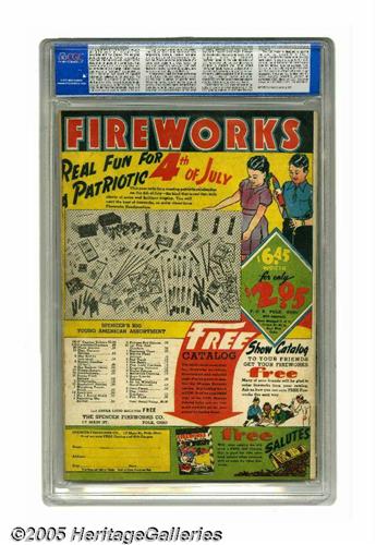 <B>Adventure Comics #51 (DC, 1940) CGC FN 6.0 Off-white to white pages.</B></I> Sandman and his gas gun put the kibosh on some spies' plan for world domination on this elegant Creig Flessel cover. Bernard Baily contributed interior art. This is the last 'gas mask' Sandman cover; when the Sandman next appeared on the cover of this series, it would be in his "superhero" look. Overstreet 2005 FN 6.0 value = $1,014. CGC census 6/05: 1 in 6.0, 9 higher.