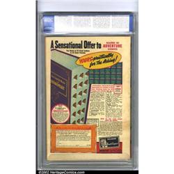 Adventure Comics #53 (DC, 1940) CGC VF- 7.5 Off-white pages. Jimmy "Minuteman" Martin and the Minutemen of America make their first appearance in this landmark issue. Incredible brightness of cover inks, and the total lack of creasing make this an amazing book. This issue is the highest graded by CGC so far, with only two copies graded in total. An incredibly rare book in any condition, this copy will be sure to please. It has everything going for it, including art by such greats as Jerry Siegel, Joe Shuster and Bernard Baily. Overstreet 2002 VF 8.0 value = $1,338. Important notice: We expect to be auctioning lots at the rate of 200-250 per hour. Sometimes eBay Premier live bid software cannot keep up with that pace, so we strongly recommend that you place a realistic proxy bid now as insurance to avoid disappointment. Also please note that all Heritage/CAA lots purchased through eBay Premier carry a 20% Buyer's Premium.