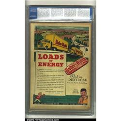 Adventure Comics #62 (DC, 1941) CGC FN- 5.5 Off-white pages. Sporting an classic Starman cover, this is truly a key Golden Age book. Starman has a great cover image on this issue, having made his debut only one month earlier in this same title. Overstreet has yet to realize the true value of this book, being the second appearance of Starman. Tons of other superheroes have their own stories in this volume as well, including Hourman and Sandman. This is an incredible book, with just some light spine wear. Overstreet 2002 FN 6.0 value = $546. Important notice: We expect to be auctioning lots at the rate of 200-250 per hour. Sometimes eBay Premier live bid software cannot keep up with that pace, so we strongly recommend that you place a realistic proxy bid now as insurance to avoid disappointment. Also please note that all Heritage/CAA lots purchased through eBay Premier carry a 20% Buyer's Premium.