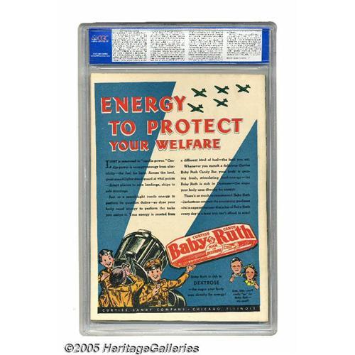 <B>Adventure Comics #74 (DC, 1942) CGC NM 9.4 Off-white to white pages.</B></I> Simon and Kirby's Sandman stars in this issue, and S&K also collaborated on the Manhunter feature. The book also has a change for Hourman in the sidekick department, as Thorndyke Tompkins replaces Jimmy ""Minute Man"" Martin. Other heroes in the issue include Starman (drawn by Jack Burley) and the Shining Knight (drawn by Bernard Baily). CGC notes, ""From the collection of Nicolas Cage."" Overstreet 2005 NM- 9.2 value = $2,400. CGC census 7/05: 2 in 9.4, none higher. <BR><BR><B>Important notice:</B> Heritage usually auctions material at the rate of 200-250 lots per hour. On some occasions eBay Live bid software or the Internet may not be able to keep up with the pace of the auction. We recommend placing a realistic absentee bid now as insurance to avoid disappointment. Occasionally the auctioneer may eliminate or reject an eBay Live bid, and the auctioneer may also reopen a lot after the close of the eBay live bidding (usually because we missed an audience bid), and may reject your bid even if it shows you as the winning bidder. By bidding via eBay Live, you agree that Heritage may award the lot to another bidder at its sole discretion under the circumstances described above or any other reasonable circumstances. Since eBay bids are not shown to us until we open the lot on the floor, we treat those bids just like floor bids. In most cases the floor responds before the eBay bid is presented to us, due to Internet lag time, so for consistency we have made it a policy that floor bids are always considered first over tie eBay live bids. Also please note that all Heritage lots purchased through eBay Live carry a 20% Buyer's Premium. Please make sure you read the Terms and Conditions before you bid. This lot is being auctioned in conjunction with a live floor auction by Heritage Galleries & Auctioneers. All final auction and invoice information will be supplied by Heritage Galleries & Auctione