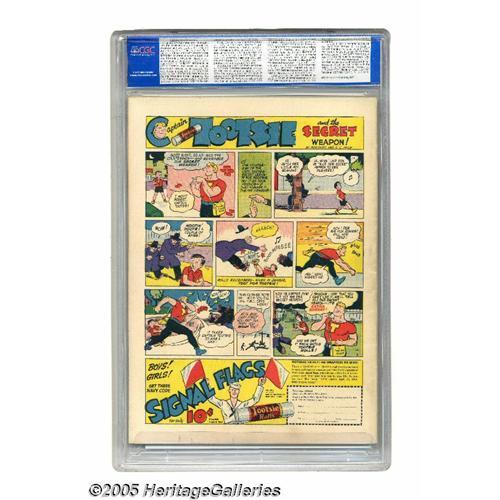 <B>Adventure Comics #90 (DC, 1944) CGC VF 8.0 Off-white to white pages.</B></I> Crimefighting team Sandman and Sandy take time out to pose for artist Jack Kirby is his studio -- that's the ""King"" pushing the pencil on this issue's cover. Inside, there's a Sandman tale by S & K (their next-to-last turn on the Dreamweaving Duo), in addition to Starman and others. Overstreet 2005 VF 8.0 value = $744. CGC census 7/05: 2 in 8.0, 2 higher. <I>From the Northern Lights Collection</B></I>. <BR><BR><B>Important notice:</B> Heritage usually auctions material at the rate of 200-250 lots per hour. On some occasions eBay Live bid software or the Internet may not be able to keep up with the pace of the auction. We recommend placing a realistic absentee bid now as insurance to avoid disappointment. Occasionally the auctioneer may eliminate or reject an eBay Live bid, and the auctioneer may also reopen a lot after the close of the eBay live bidding (usually because we missed an audience bid), and may reject your bid even if it shows you as the winning bidder. By bidding via eBay Live, you agree that Heritage may award the lot to another bidder at its sole discretion under the circumstances described above or any other reasonable circumstances. Since eBay bids are not shown to us until we open the lot on the floor, we treat those bids just like floor bids. In most cases the floor responds before the eBay bid is presented to us, due to Internet lag time, so for consistency we have made it a policy that floor bids are always considered first over tie eBay live bids. Also please note that all Heritage lots purchased through eBay Live carry a 20% Buyer's Premium. Please make sure you read the Terms and Conditions before you bid. This lot is being auctioned in conjunction with a live floor auction by Heritage Galleries & Auctioneers. All final auction and invoice information will be supplied by Heritage Galleries & Auctioneers, and all other information should be considered preliminary.