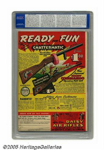 50. Auctioneer offers no opinion as to the validity of a grade assigned by any third-party grading service. Since we cannot examine C.G.A. encapsulated notes or Comics Guaranty Corporation (CGC) encapsulated comics, they are sold "as is" without our grading opinion, and may not be returned for any reason. Auctioneer shall not be liable for any patent or latent defect or controversy pertaining to or arising from any encapsulated collectible. In any such instance, purchaser's remedy, if any, shall be solely against the certification service certifying the collectible.