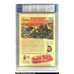 Adventure Comics #97 (DC, 1945) CGC VF+ 8.5 Off-white to white pages. The Sandman and Sandy attempt to prevent an alien invasion on this frenetic cover by Joe Simon and Jack Kirby. In addition the Sandman story, Starman and the Shining Knight also rate interior features. A great copy of this books, it has no major defects and offers plenty of "eye-appeal." There are currently only three copies of this issue that have been graded higher by CGC. Overstreet 2003 VF 8.0 value = $600; VF/NM 9.0 value = $850. Important notice: Heritage usually auctions material at the rate of 200-250 lots per hour. On some occasions eBay Live bid software or the Internet may not be able to keep up with the pace of the auction. We recommend placing a realistic absentee bid now as insurance to avoid disappointment. Occasionally the auctioneer may eliminate or reject an eBay Live bid, and the auctioneer may also reopen a lot after the close of the eBay live bidding (usually because we missed an audience bid), and may reject your bid even if it shows you as the winning bidder. By bidding via eBay Live, you agree that Heritage may award the lot to another bidder at its sole discretion under the circumstances described above or any other reasonable circumstances. Also please note that all Heritage lots purchased through eBay Live carry a 20% Buyer's Premium. Please make sure you read the Terms and Conditions before you bid.