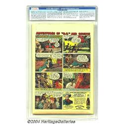 <B>Adventure Comics #99 (DC, 1945) CGC VF- 7.5 Off-white to white pages.</B></I> Needing some downtime from collaring criminals, the Sandman and Sandy have a little fun on this issue's cover (Gerber credits the art to Jack Kirby). Starman, who's all business on the cover inset, appears in a backup feature. Overstreet 2004 VF 8.0 value = $600. <BR><BR><B>Important notice:</B> Heritage usually auctions material at the rate of 200-250 lots per hour. On some occasions eBay Live bid software or the Internet may not be able to keep up with the pace of the auction. We recommend placing a realistic absentee bid now as insurance to avoid disappointment. Occasionally the auctioneer may eliminate or reject an eBay Live bid, and the auctioneer may also reopen a lot after the close of the eBay live bidding (usually because we missed an audience bid), and may reject your bid even if it shows you as the winning bidder. By bidding via eBay Live, you agree that Heritage may award the lot to another bidder at its sole discretion under the circumstances described above or any other reasonable circumstances. Since eBay bids are not shown to us until we open the lot on the floor, we treat those bids just like floor bids. In most cases the floor responds before the eBay bid is presented to us, due to Internet lag time, so for consistency we have made it a policy that floor bids are always considered first over tie eBay live bids. Also please note that all Heritage lots purchased through eBay Live carry a 20% Buyer's Premium. Please make sure you read the Terms and Conditions before you bid.