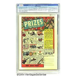 <B>Adventures Into Terror #9 Bethlehem pedigree (Atlas, 1952) CGC VF/NM 9.0 Cream to off-white pages.</B></I> Russ Heath cover. Joe Sinnott and Ogden Whitney art. Overstreet notes, "decapitation panels." This barely misses being the highest-graded copy in CGC's most recent census. Includes a certificate of authenticity from the Bethlehem collection. Overstreet 2004 VF/NM 9.0 value = $194; NM- 9.2 value = $250. <BR><BR><B>Important notice:</B> Heritage usually auctions material at the rate of 200-250 lots per hour. On some occasions eBay Live bid software or the Internet may not be able to keep up with the pace of the auction. We recommend placing a realistic absentee bid now as insurance to avoid disappointment. Occasionally the auctioneer may eliminate or reject an eBay Live bid, and the auctioneer may also reopen a lot after the close of the eBay live bidding (usually because we missed an audience bid), and may reject your bid even if it shows you as the winning bidder. By bidding via eBay Live, you agree that Heritage may award the lot to another bidder at its sole discretion under the circumstances described above or any other reasonable circumstances. Since eBay bids are not shown to us until we open the lot on the floor, we treat those bids just like floor bids. In most cases the floor responds before the eBay bid is presented to us, due to Internet lag time, so for consistency we have made it a policy that floor bids are always considered first over tie eBay live bids. Also please note that all Heritage lots purchased through eBay Live carry a 20% Buyer's Premium. Please make sure you read the Terms and Conditions before you bid.