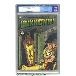 Adventures Into the Unknown #3 Diamond Run pedigree (ACG, 1949) CGC NM 9.4 White pages. Who can resist the lure of entering an ancient Egyptian tomb in search of lost treasure? Well, these two adventurers should have heeded all those warnings from their guide, because creeping out of the sarcophagus comes.... We'll let the lucky winning bidder find out what comes next, but we can tell you this: art in this fine early ACG comic includes nine pages by future EC mainstay Al Feldstein, and that this uncommon book (Gerber 6) needs to be snapped up while you can -- it is a treasure! In fact, it remains the only copy currently certified by CGC. Now, that is scary! Overstreet 2003 NM 9.4 value = $875. Important notice: Heritage usually auctions material at the rate of 200-250 lots per hour. On some occasions eBay Live bid software or the Internet may not be able to keep up with the pace of the auction. We recommend placing a realistic absentee bid now as insurance to avoid disappointment. Occasionally the auctioneer may eliminate or reject an eBay Live bid, and the auctioneer may also reopen a lot after the close of the eBay live bidding (usually because we missed an audience bid), and may reject your bid even if it shows you as the winning bidder. By bidding via eBay Live, you agree that Heritage may award the lot to another bidder at its sole discretion under the circumstances described above or any other reasonable circumstances. Since eBay bids are not shown to us until we open the lot on the floor, we treat those bids just like floor bids. In most cases the floor responds before the eBay bid is presented to us, due to Internet lag time, so for consistency we have made it a policy that floor bids are always considered first over tie eBay live bids. Also please note that all Heritage lots purchased through eBay Live carry a 20% Buyer's Premium. Please make sure you read the Terms and Conditions before you bid.