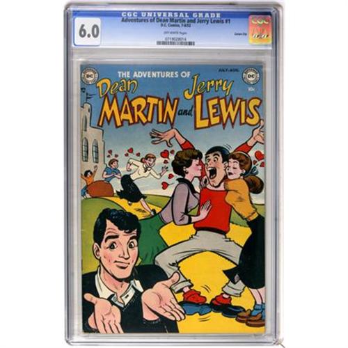 <B>Adventures of Dean Martin and Jerry Lewis #1 Carson City pedigree (DC, 1952) CGC FN 6.0 Off-white pages.</B></I> Overstreet 2007 FN 6.0 value = $321. CGC census 6/07: 3 in 6.0, 4 higher.<BR><BR><b>Shipping:</b> Comics - Slabbed (certified) (<a target="_blank" href="http://www.heritageauctions.com/common/shipping.php">view shipping information</a>)