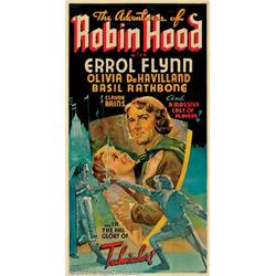 Adventures of Robin Hood (Warner Brothers, 1938) Three Sheet (41" X 81"). This gorgeous "other company" stone litho three sheet is one of only two known copies. Perhaps the most beautiful poster done for the original release of this landmark film. Fine on Linen. Important notice: We expect to be auctioning lots at the rate of 200-250 per hour. Sometimes eBay Premier live bid software cannot keep up with that pace, so we strongly recommend that you place a realistic proxy bid now as insurance to avoid disappointment. Also please note that all Heritage/CAA lots purchased through eBay Premier carry a 20% Buyer's Premium.