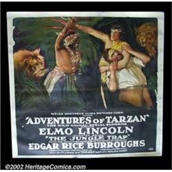 Adventures of Tarzan " The Jungle Trap" (Numa 1921) Six Sheet (81" X 81") Elmo Lincoln, the original Tarzan from the 1918 film "Tarzan of the Apes" was back in this adventure. This was a serial in fifteen episodes. Offered here is a fabulous six sheet which is very rare for any silent film. Fine on Linen. Important notice: We expect to be auctioning lots at the rate of 200-250 per hour. Sometimes eBay Premier live bid software cannot keep up with that pace, so we strongly recommend that you place a realistic proxy bid now as insurance to avoid disappointment. Also please note that all Heritage/CAA lots purchased through eBay Premier carry a 20% Buyer's Premium.
