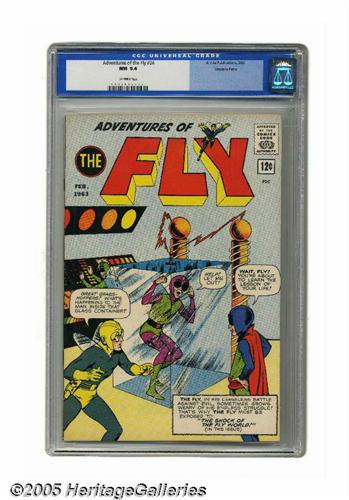 <B>Adventures of the Fly #24 Western Penn pedigree (Archie, 1963) CGC NM 9.4 Off-white pages.</B></I> John Rosenberger cover and art. Overstreet 2005 NM- 9.2 value = $55. CGC census 1/05: 2 in 9.4, none higher. <I>From the collection of Chris Bell.</B></I>