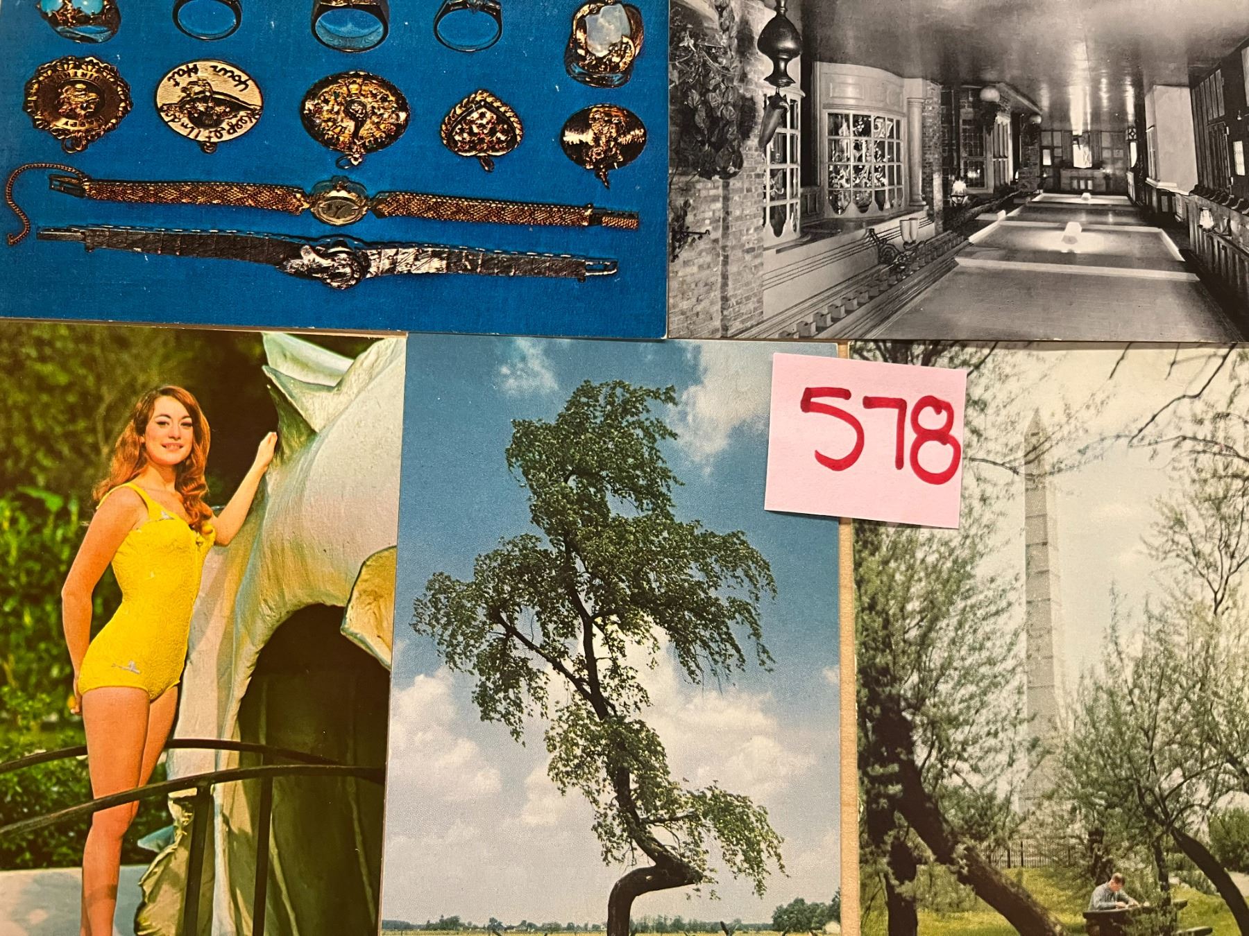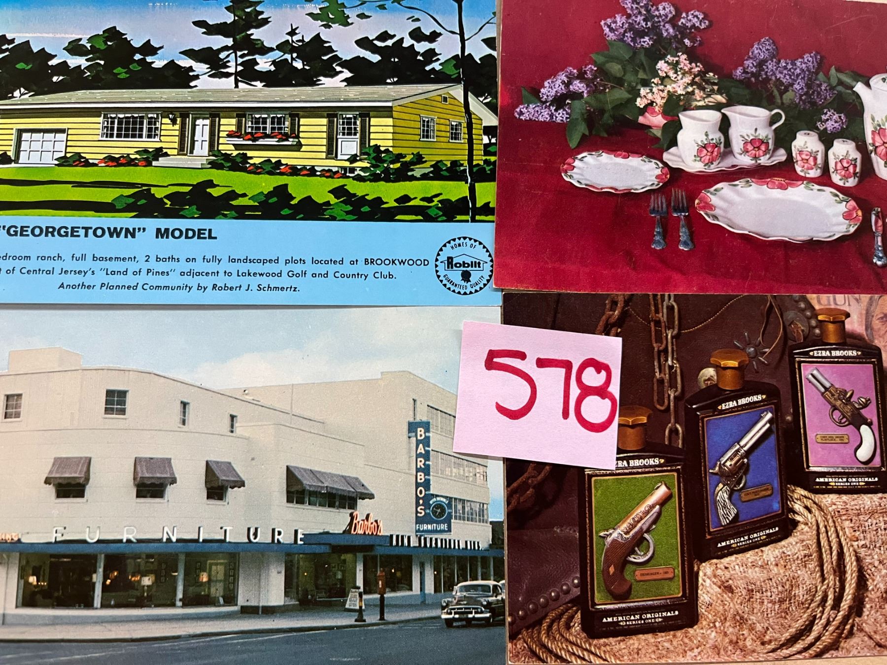 Over 75 standard size chrome advertising postcards. Furniture, jewelry, lamps, signs and more.