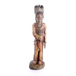 This lot features an exceptional Hand Carved Cigar Store Indian. Historically, these carvings would be placed outside of tobacco outlets, signifying t