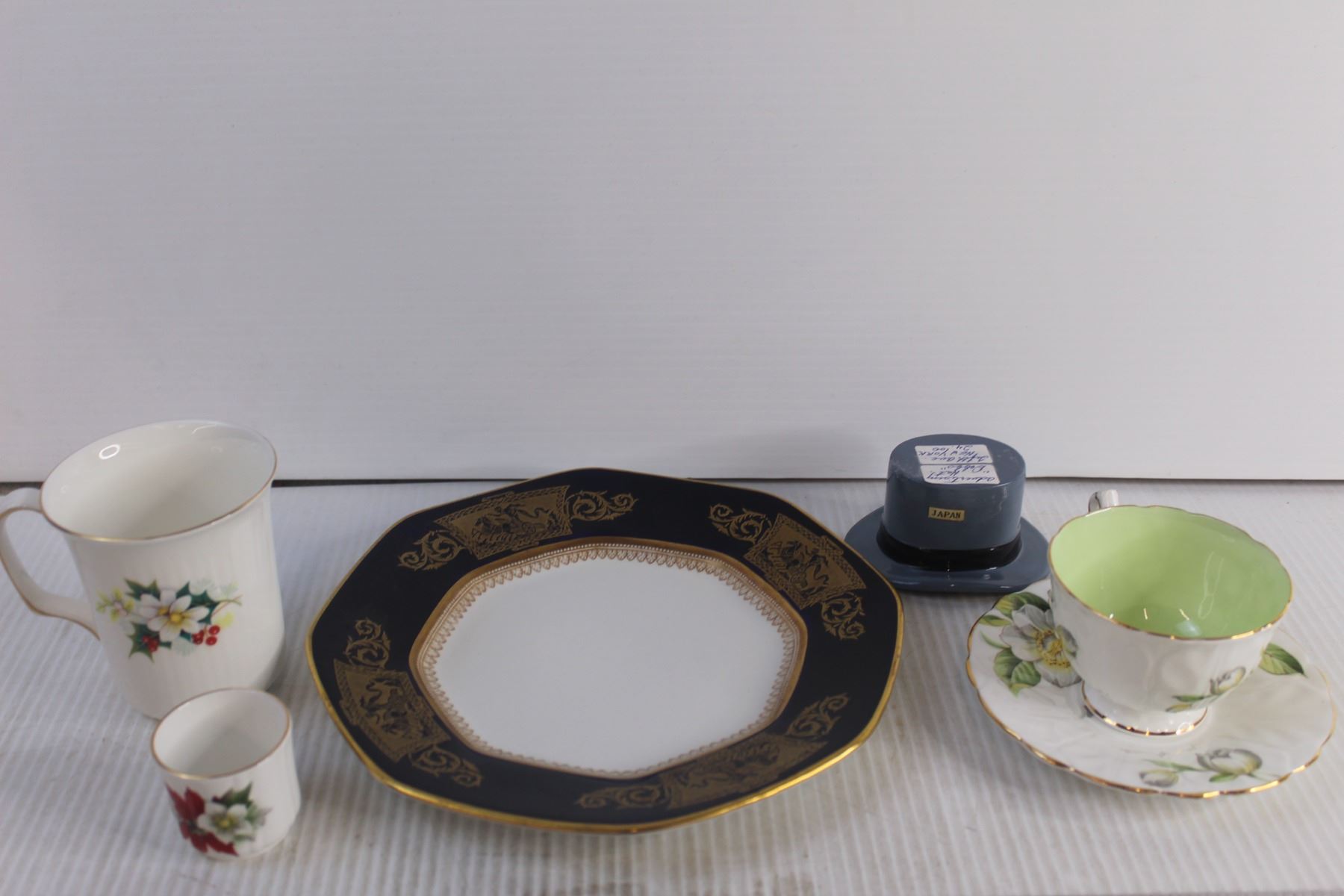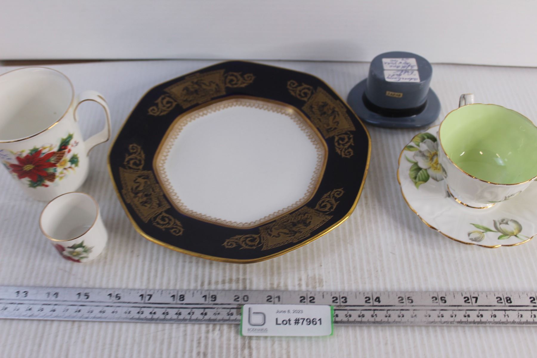 Advertising Hat Dobbs + Aynsley Tea cup and Plate + Solian Ware Plate + Royal Albert Cup