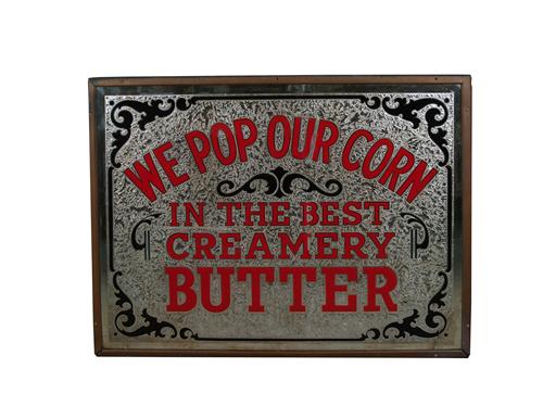 Advertising Popcorn Mirror c.1920 2 color, Chipped glass style w/copper frame