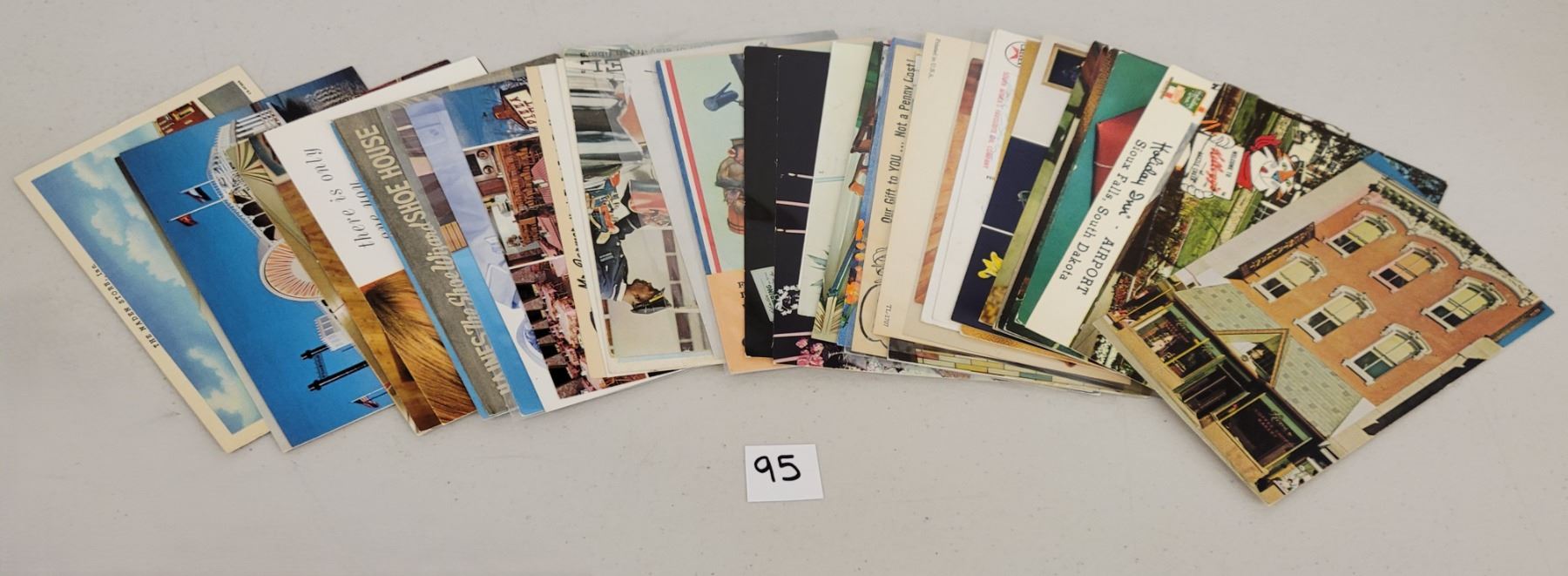 Over 40 advertising postcards. Mostly standard size chrome. All standard size chrome and earlier.