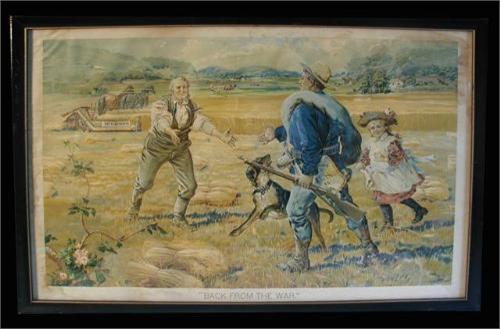 Advertising Print for McCormick Farm Equipment. Back from the War. Framed Under Glass.