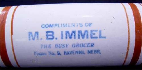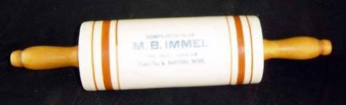 Advertising Rolling Pin, "M.B. Immel, Ravenna Nebraska," 14.5" long
