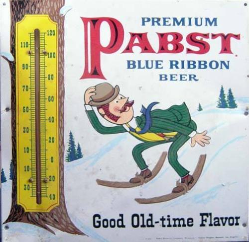 Advertising Tin Sign Thermometer, "Premium Pabst Blue Ribbon Beer", 15.5" x 14.5"