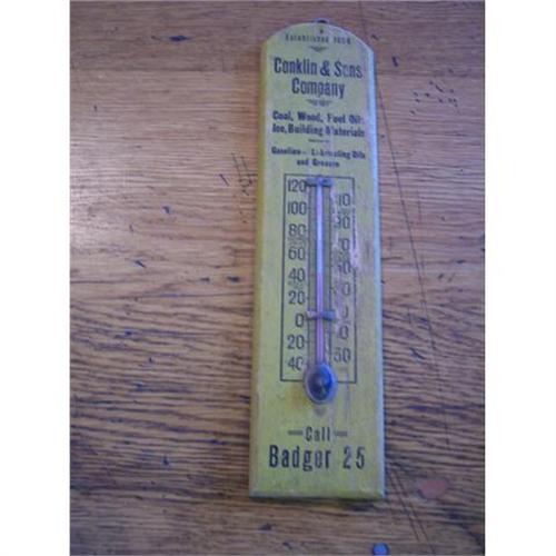 Old wooden advertising thermometer.Conklin & Sons Company.Not sure where this is from .Has the glass piece.Measures 12" long.Minor paint wear.Great early advertising piece.These all look great displayed on a wall.