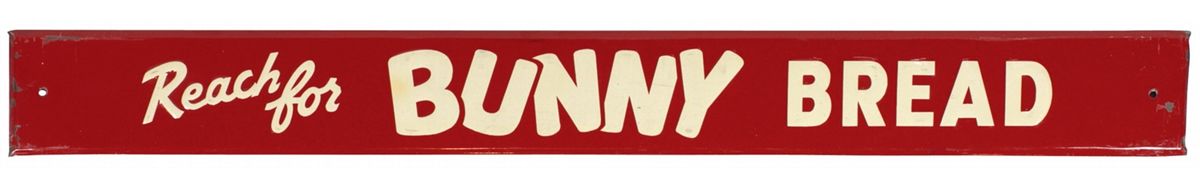 Advertising door push & sign (2), Reach for Bunny Bread, embossed metal, VG/Exc cond w/minor wear, 3