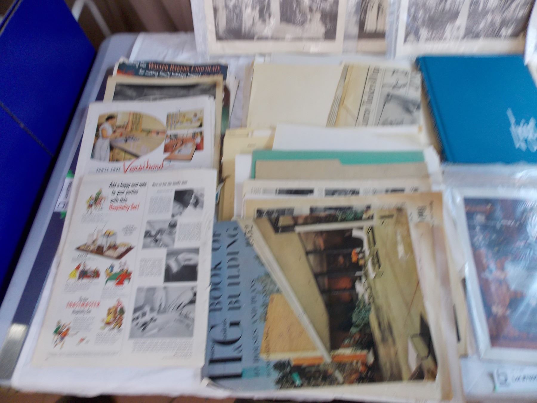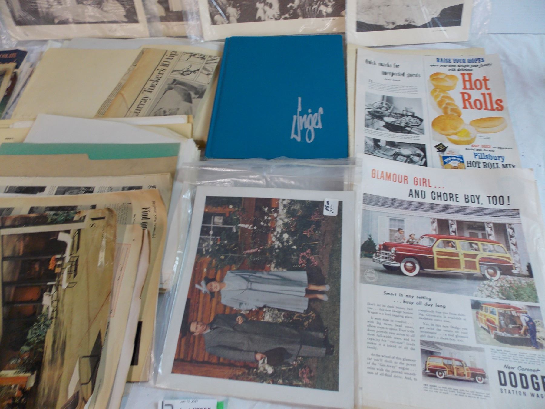 Advertising magazine clipping, various old photographs, paperwork, jim unger book