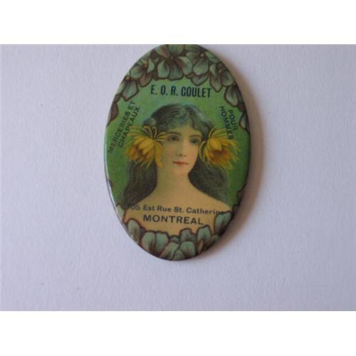Art Nouveau style advertising pocket mirror.Typical Art Nouveau floral design.</em></td>