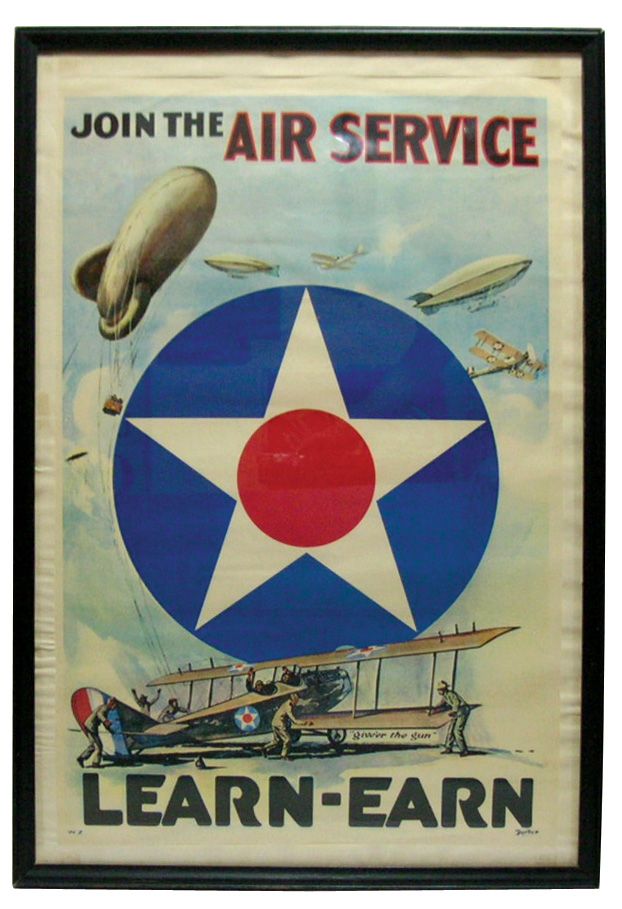 Advertising poster, Air Service, litho on paper, Exc cond, 28.5"H x 19.5"W framed.