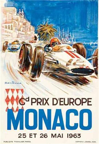 Title: GRAND PRIX D'EUROPE, MONACO 1963 - Author: BELIGOND - Litograph - 1963 - 60x41 - Quality: A- -